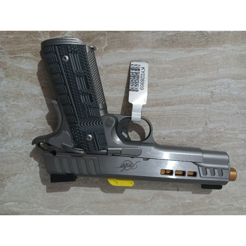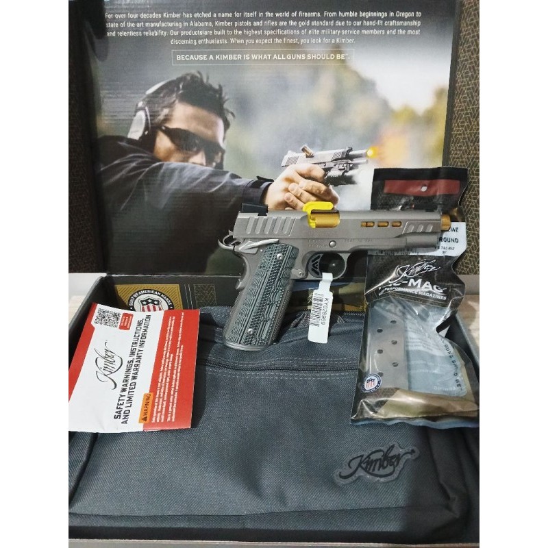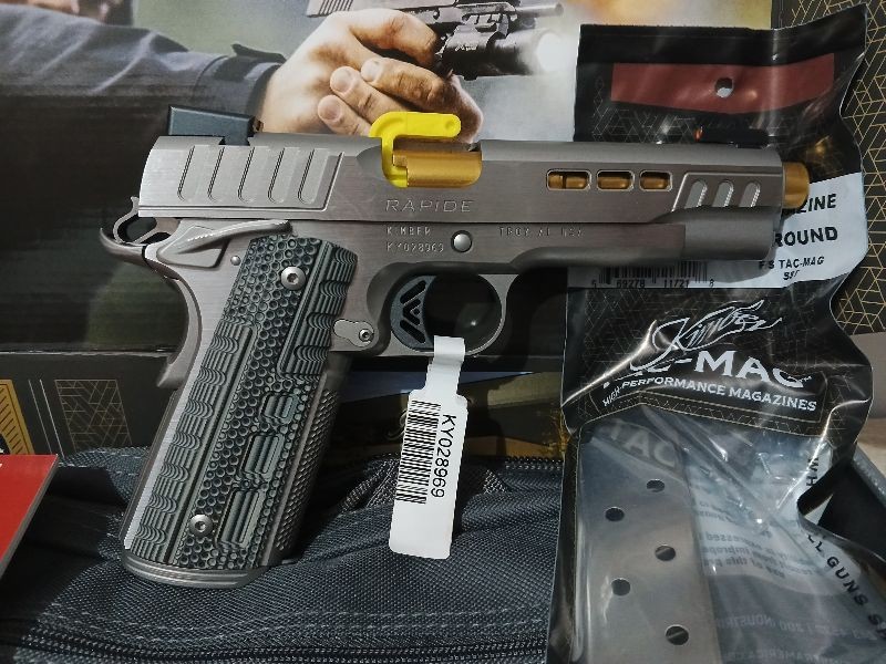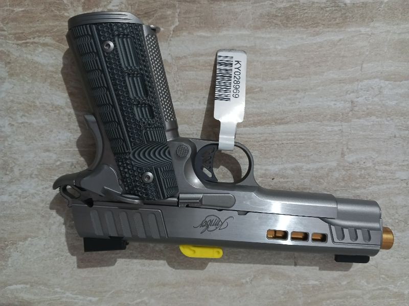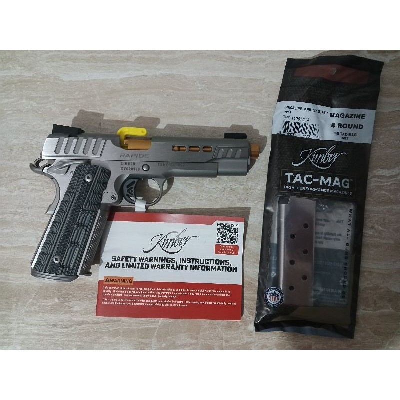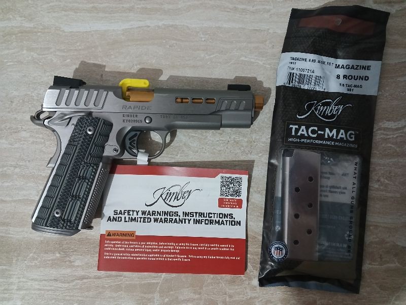 Tam sıfır Kimber 1911 Rapide Dawn .45 ACP tabancam satılıktır. - Hiç atış yapılmamıştır. - Kutu ve tüm orijinal aksesuarlar (şarjör, kullanım kılavuzu vb.) eksiksiz - Çizik veya deformasyon yok Özellikler: - Kalibre: .45 ACP - Durum: Sıfır (0 atım) - Renk: Rapide Dawn ( gümüş ) - Malzeme: Çelik gövde - Kutu, şarjör ve belgeler dahil - Koleksiyonluk kondisyon