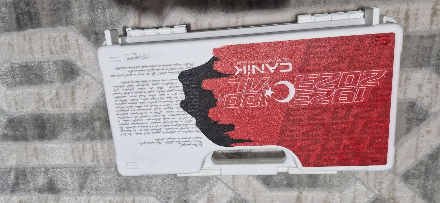 Hiç mermi atılmadı sıfır kutusunda. Cumhuriyetin 100.yılına özel üretilen tabanca.Namlusu tetiği gezi arpacığı Amerikan SAI marka.dosyası Ankara'da belgesi hazır olanlar arayabilir.