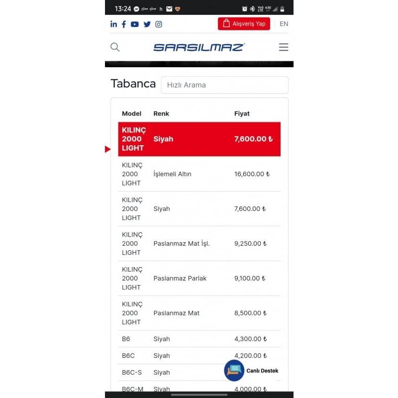 Sıfırdan farkı yok SARSILMAZ KILINÇ 2000 LİGHT 2015 yılında aldım kutusu faturası mevcut ilk aldığımdaki 200 mermiden 50 si duruyor , çizik dahi yok temizlik malzemeleri orjinali duruyor