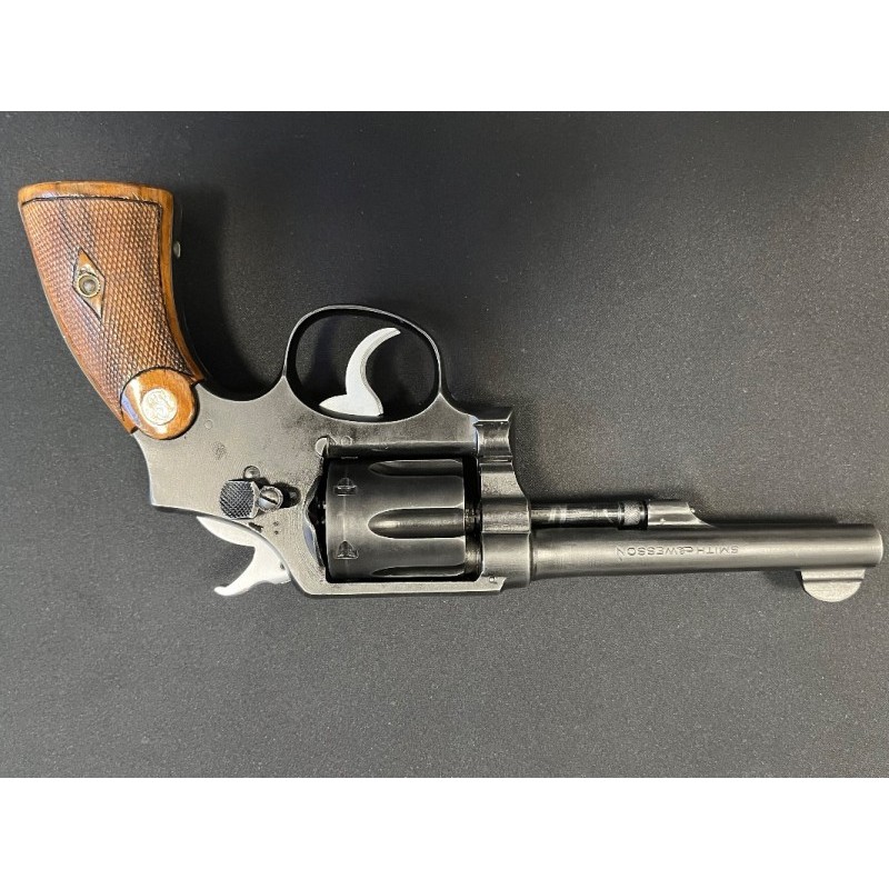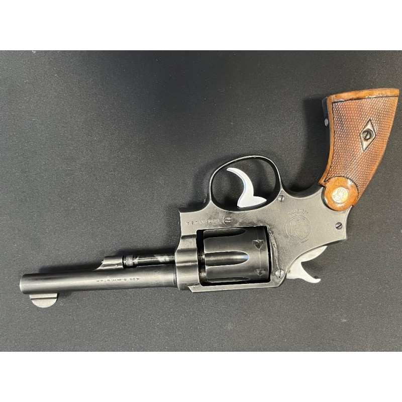 Smith & wesson 38 (orta namlu) Şarjör: 6 mermi (6 patlar) Kalibre: 9.65 mm Tetik ve horoz değişik diğer parçalar orjinal. Atışları son derece isabetlidir. Bu tabanca hem koleksiyonerler hemde sınırlı üretim silahlara ilgi duyan kullanıcılar için bulunması zor bir fırsattır.