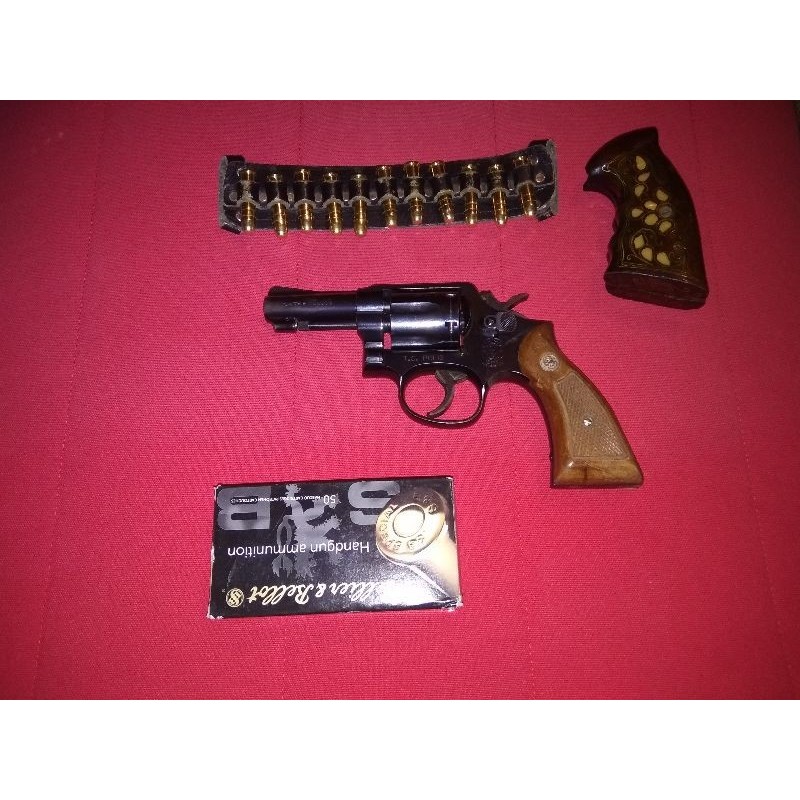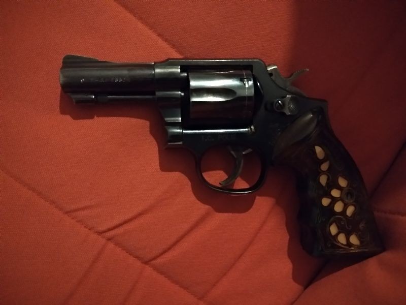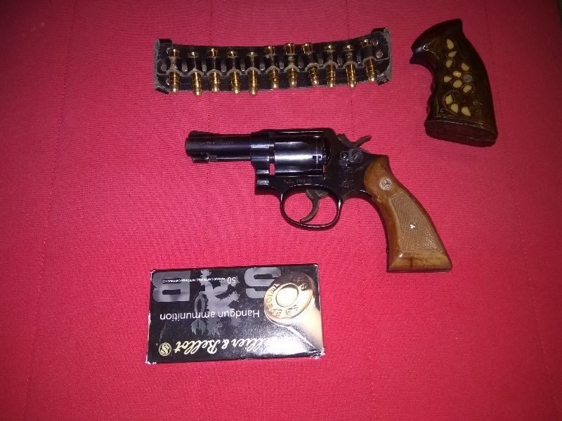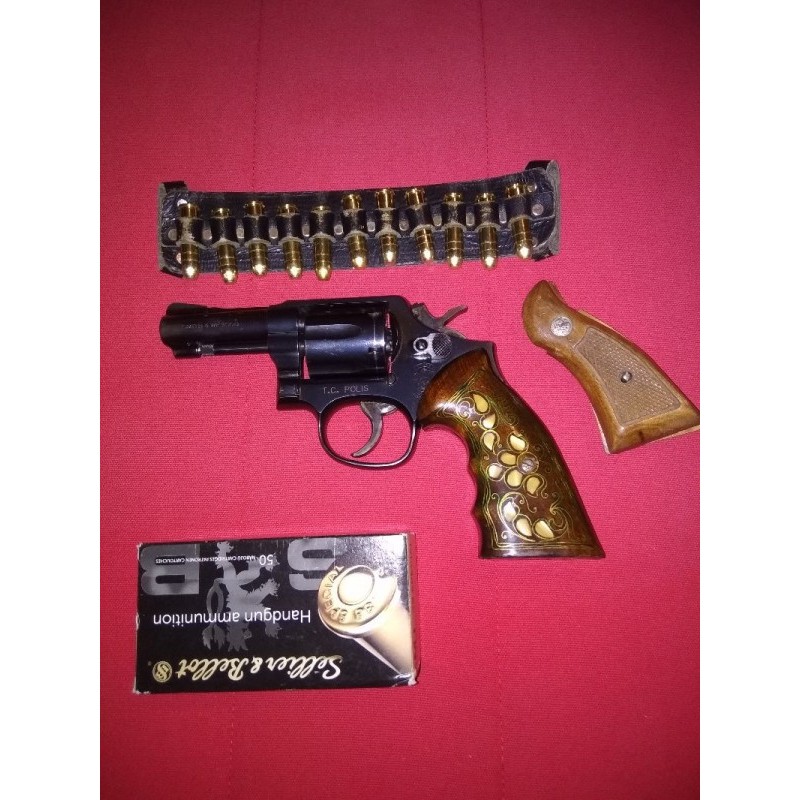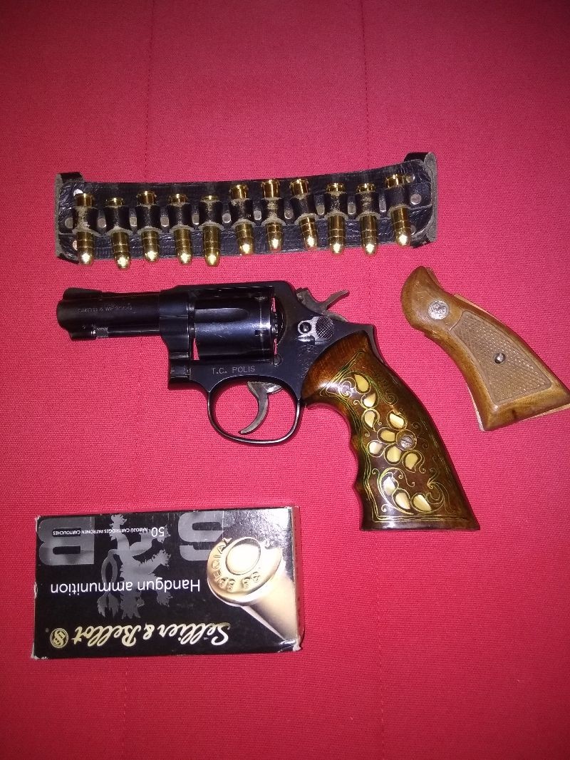 Memurdan Çok temiz TC.Polis yazan Smith & Wesson tabanca Yanında orjinal kabze ve bir adet sedef işlemeli kabze,1 kutu ( 50 adet ) mermi birlikte verilecektir.
