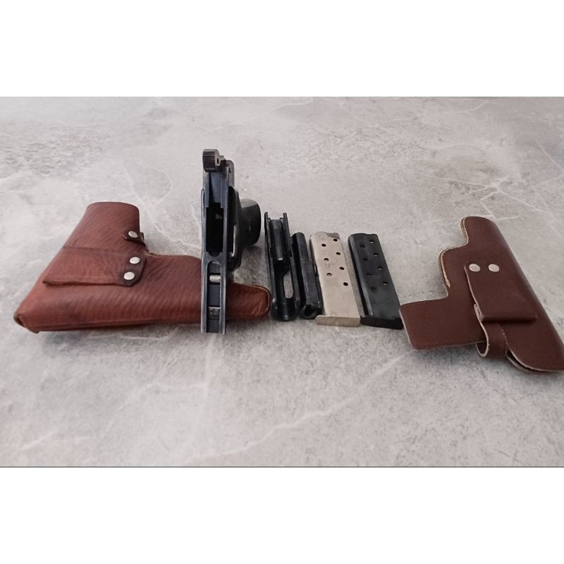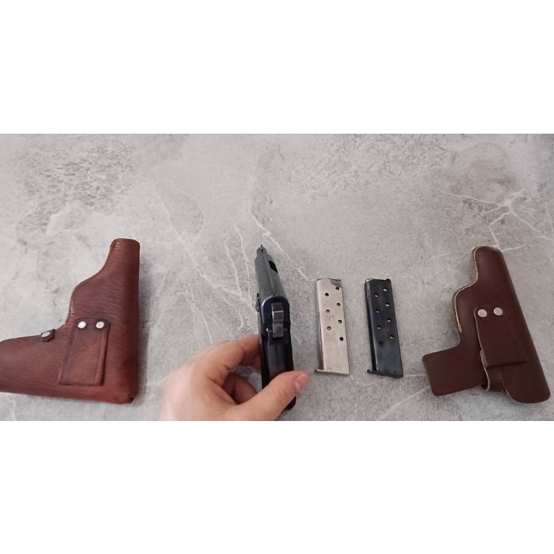 Webley & Scott 7.65 mm çaplı 8+1 iki adet şarjörü ve kılıfı bulunmaktadır. Ruhsatlı olarak devir edilecektir. Ruhsat işlemlerinizi tamamladıktan sonra arayın, RUHSATSIZ OLARAK ARAMAYIN lütfen.